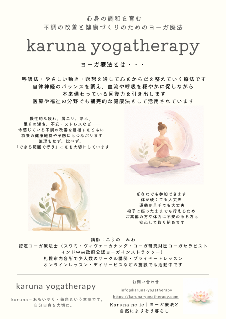 karuna yogatherapyのチラシが出来ました! ヨーガ療法を知ってもらうきっかけになれば・・・ -